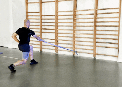Place-toi en fente avant, et réalise un tirage dynamique, coude collé au corps. Maintiens le buste droit, et le regard situé devant durant tout l’exercice.