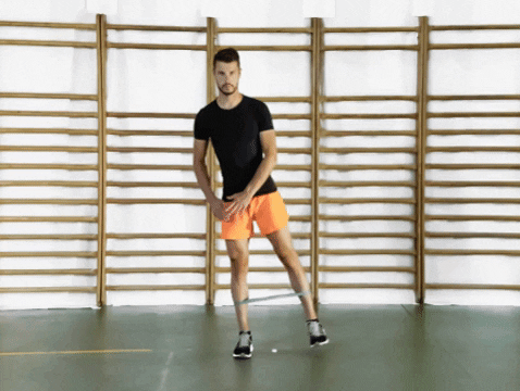 Prends appui sur un pied et trouve l’équilibre en fixant un point devant toi. Essaie de mettre le moins possible le pied au sol afin de travailler aussi sur la proprioception, et freine le retour pour un ressenti optimal.