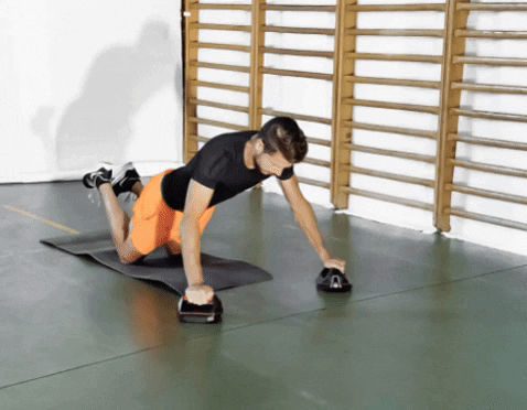 Rentre le ventre, et contracte les fessiers fortement avant d’engager tout mouvement vers l’avant. Pousse et tire les rollers en maintenant l’alignement tête-tronc-bassin.